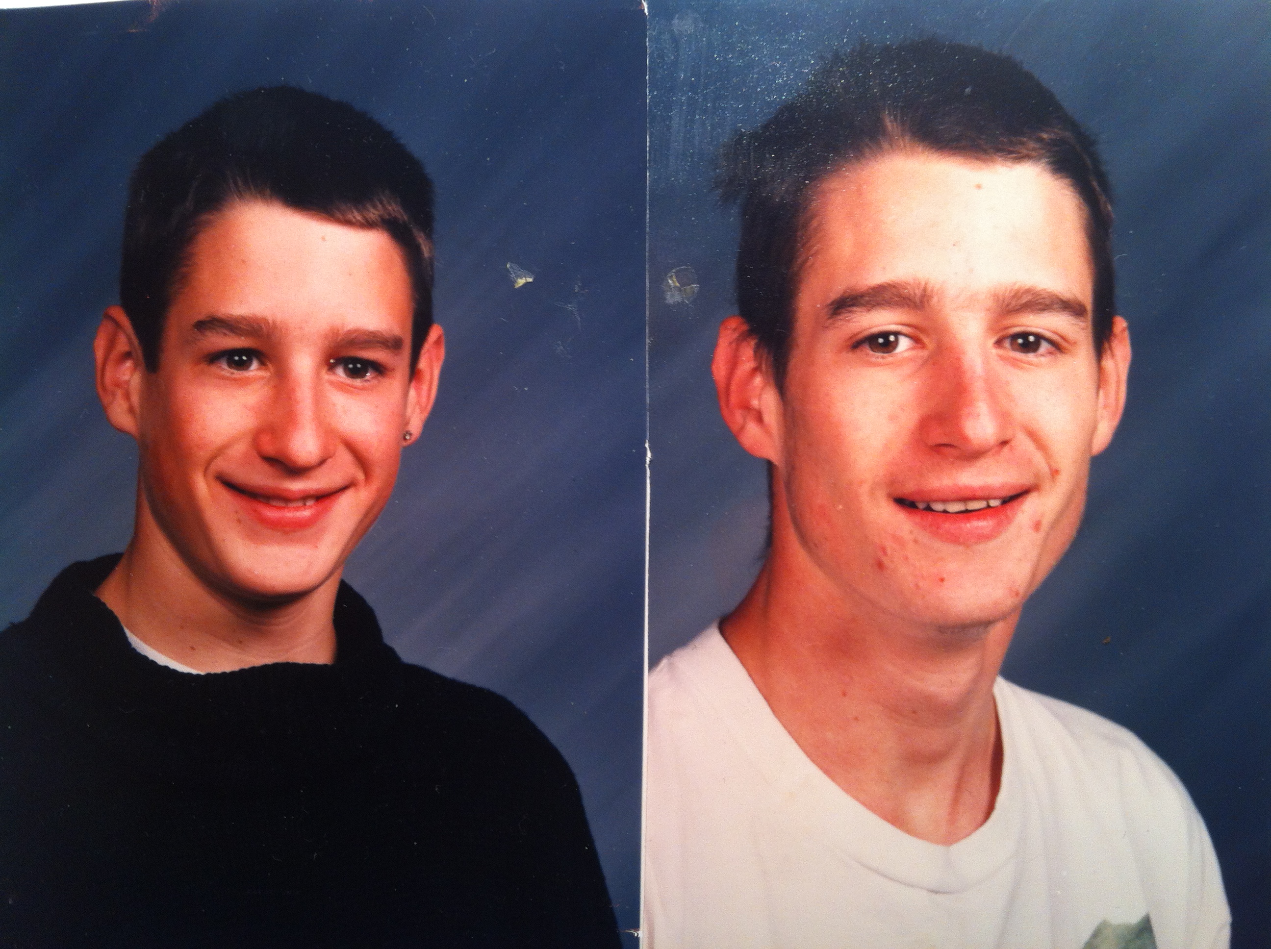 These are Vince’s school portraits from 9th grade and about a year later, just before he dropped out: