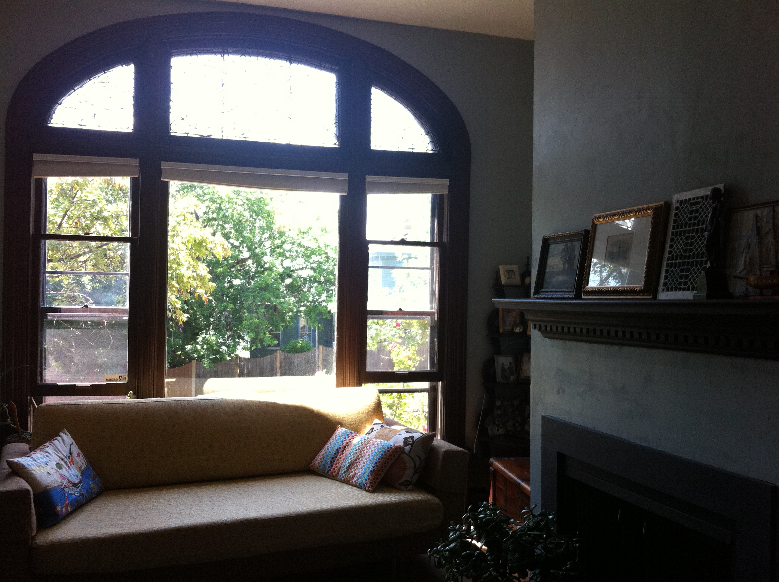 My favorite feature of the place: a big south-facing window with beveled glass.