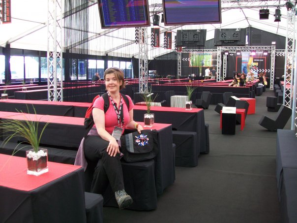 We arrived at the registration point and there was a line a hundred people deep. An employee came by and scanned our confirmations. “Oh,” he said meaningfully, “You’re North Americans.” I didn’t correct him, that Rebecca was not a North American, in case that was a bad thing which would cause her to be ejected.