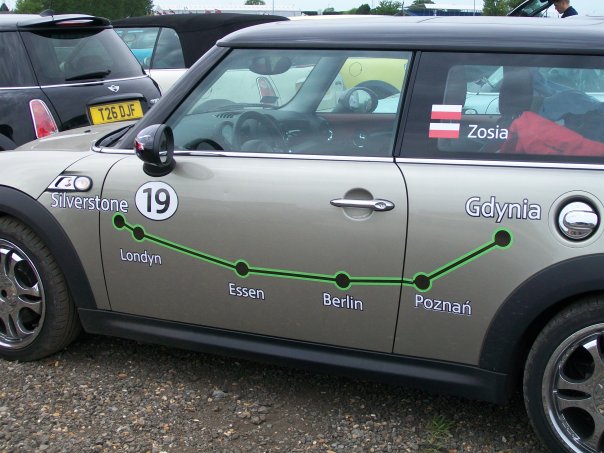 To give you an idea of how passionate Mini owners can be, here are some Minis with the equivalent of car tattoos showing where their owners drove from—in order—Budapest, Kiev, Moscow, and Gdynia, Poland.