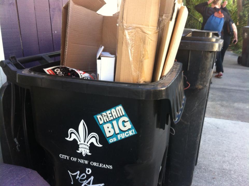 Here’s a suggested philosophy for life. “Dream Big as Fuck!”–on garbage can?
