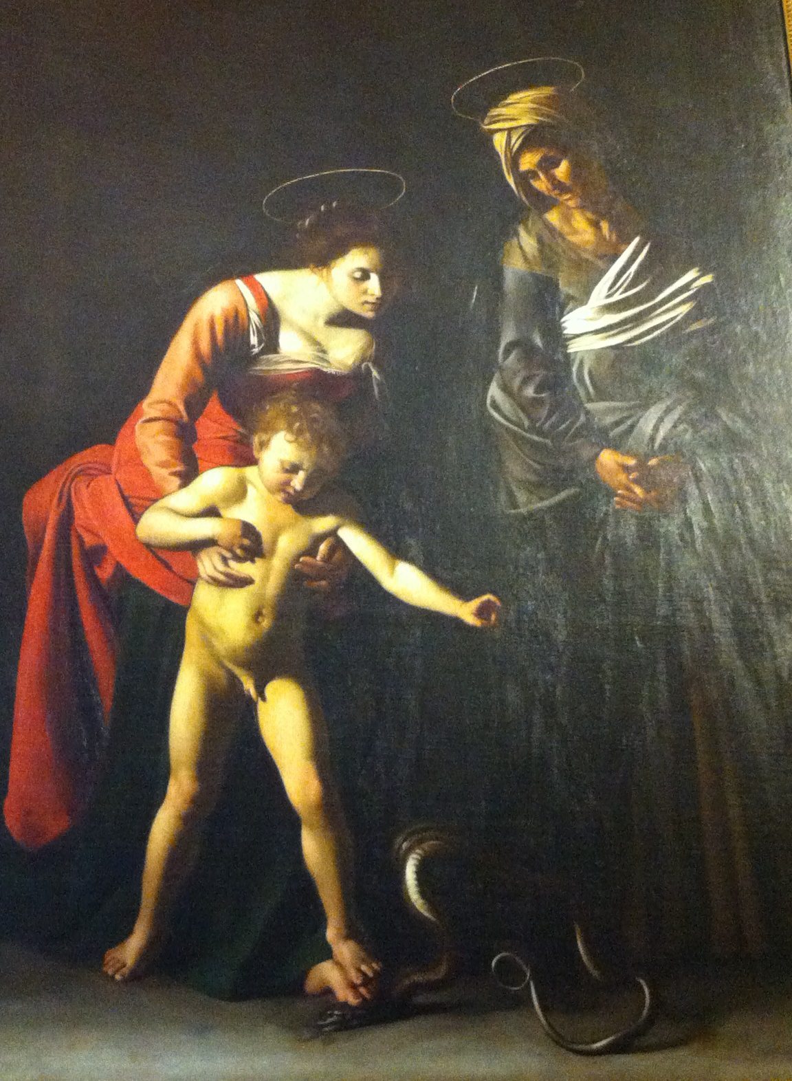 Then there were the paintings by Caravaggio. This one had been banned because it depicted Mary with cleavage and was unflattering of her mother, Anne. Full frontal male nudity, I guess, was not a problem.