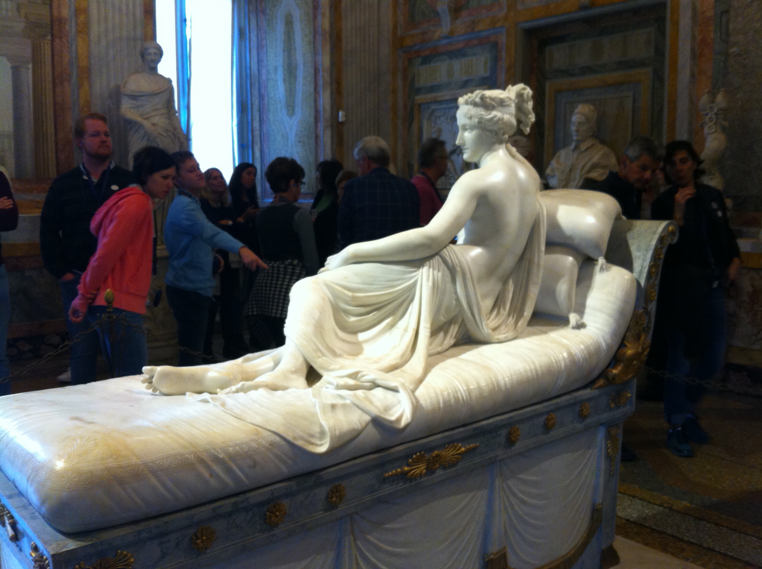 There was a sculpture of Napolean’s sister Pauline, who was married to a Borghese for the political alliance. Note the wrinkles in the marble “mattress.”