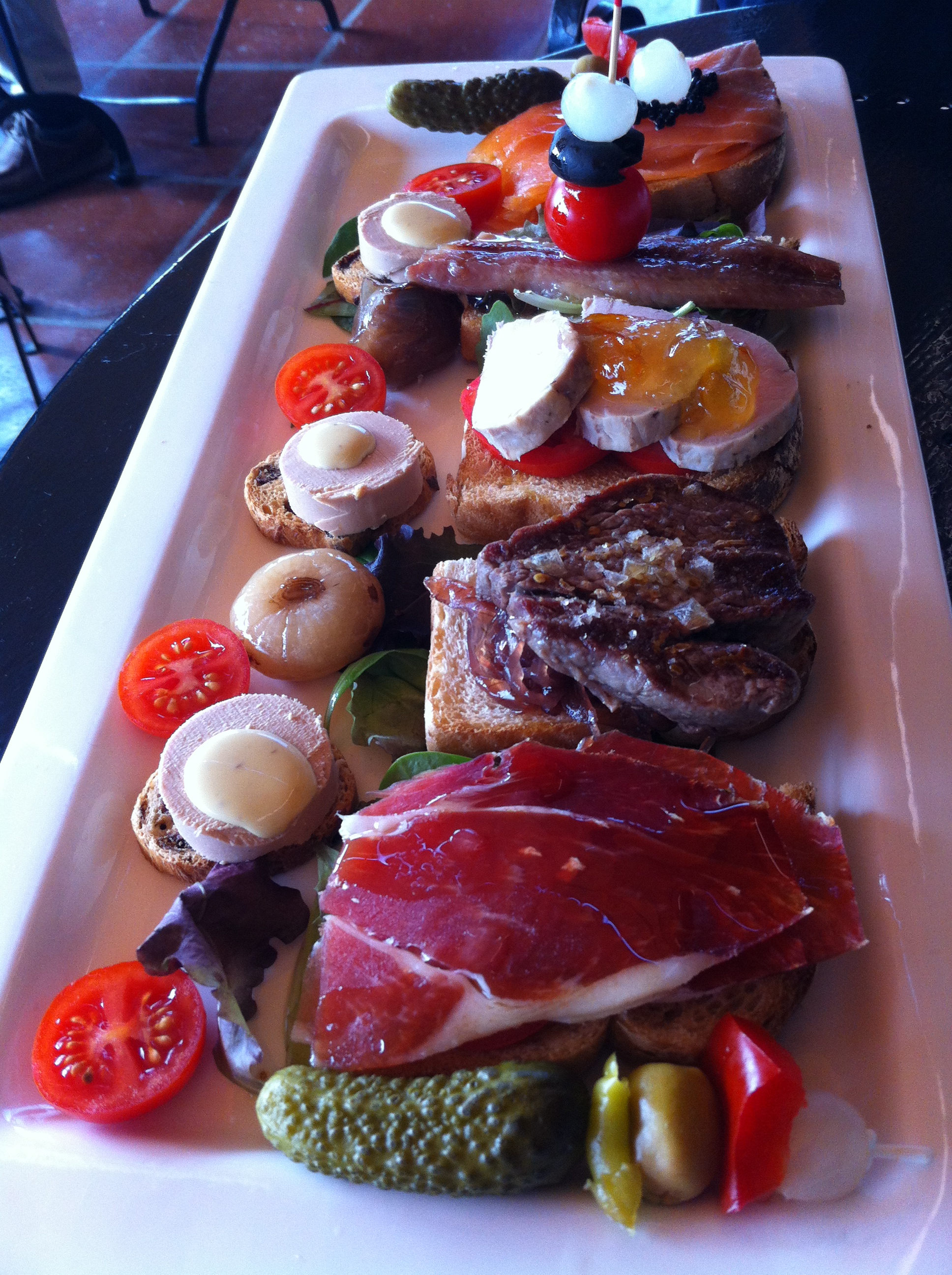 We huffed our way slowly back up the hill to the hotel and ordered drinks and the tapas platter on the terrace. Now this is tapas: