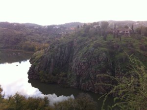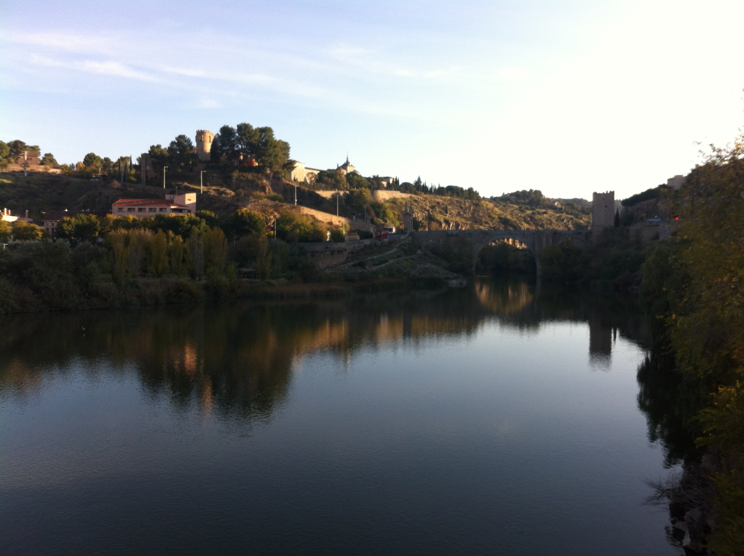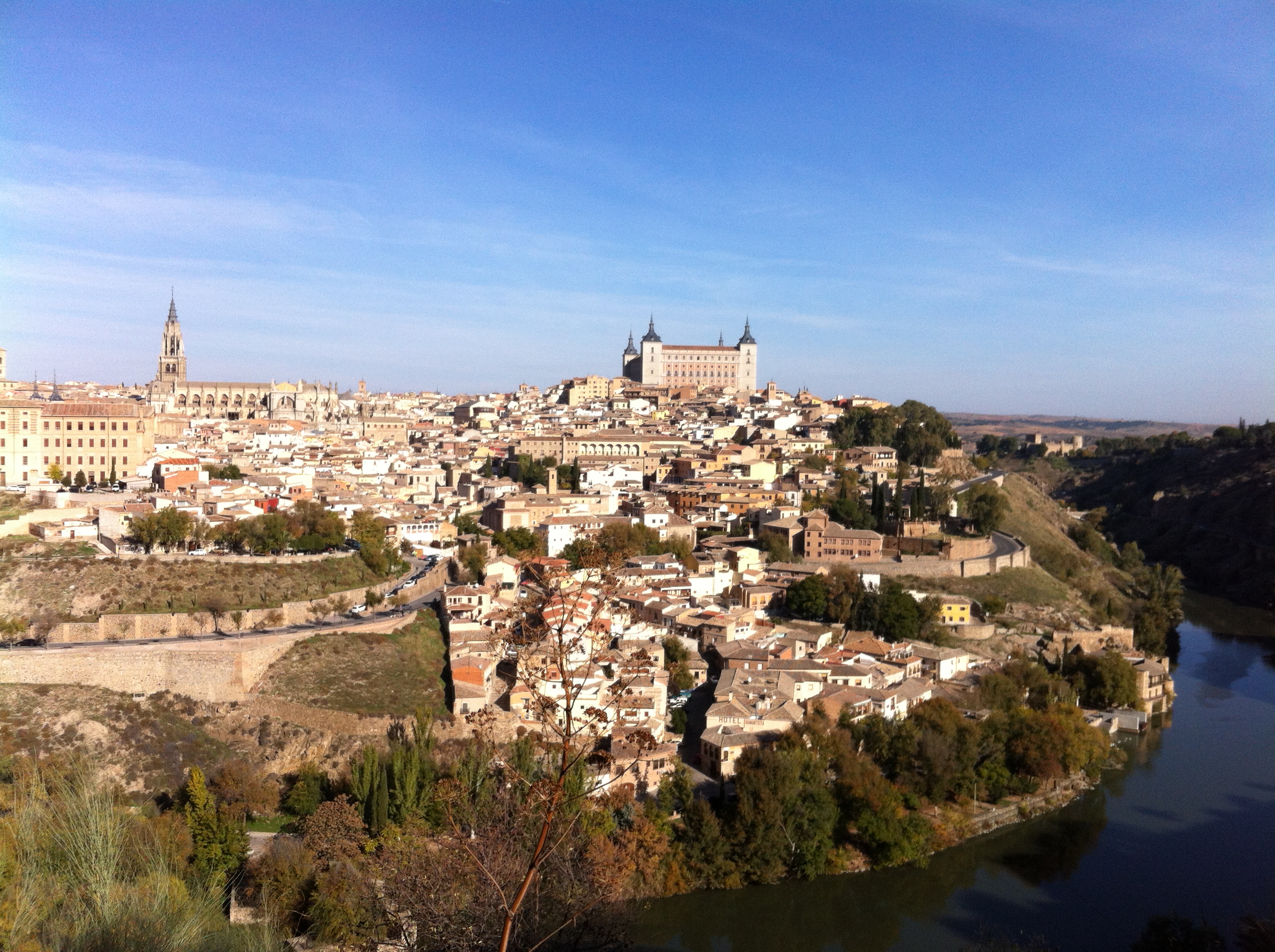 Toledo, like Granada, had a “touristic trolley.” This one was easier to buy tickets for and board, so in five minutes off we went. The trolley couldn’t navigate the narrow lanes of Toledo central, so it exited one of the city gates and stopped to let us off for scenic views from across the river. It really is a romantically beautiful city, and the sky even cleared on one side for a few minutes.