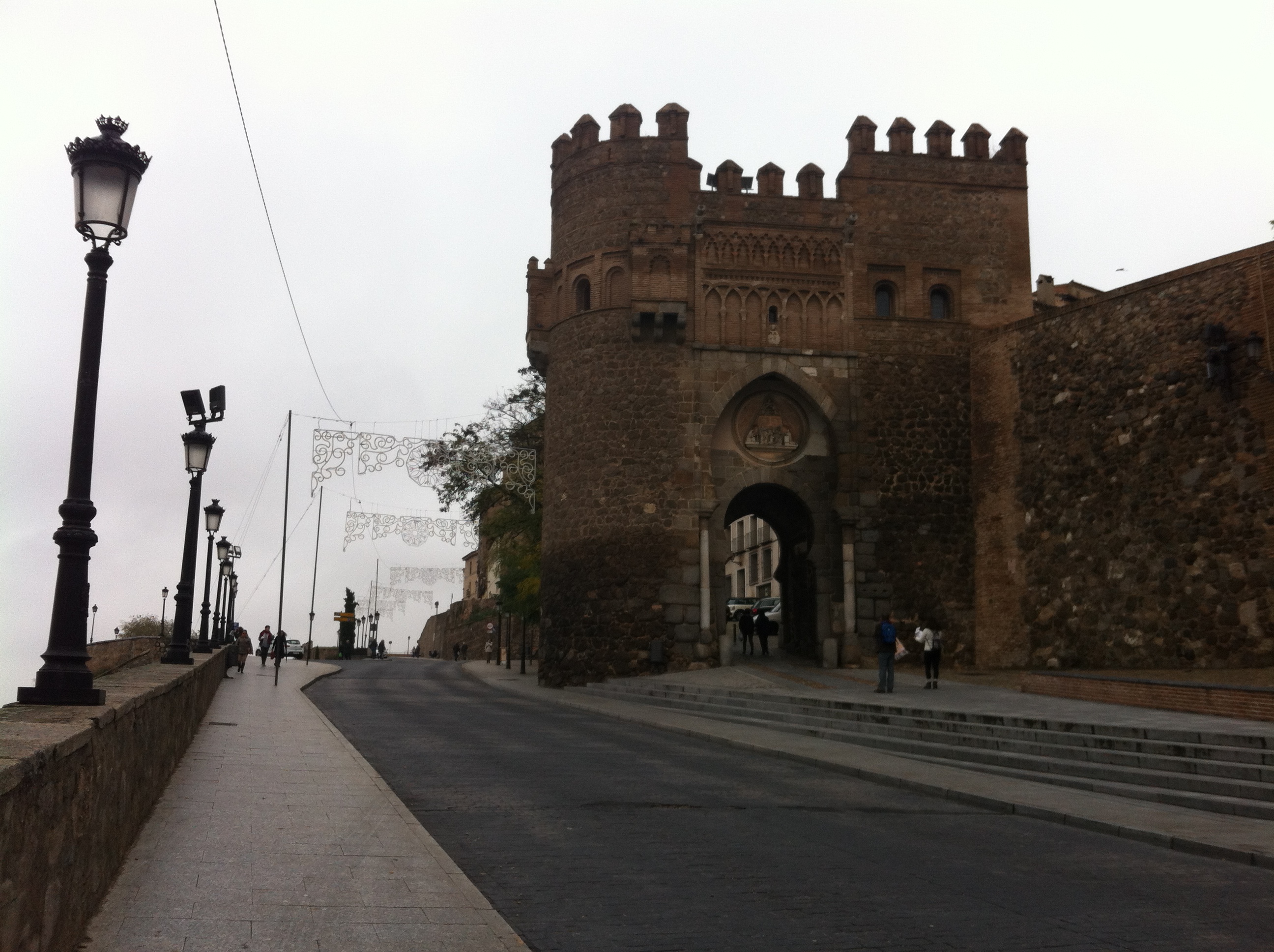 Toledo is on a hill on a peninsula, so it made a great fortress in its day. There’s a medieval wall surrounding it, occasionally punctuated by imposing gates: