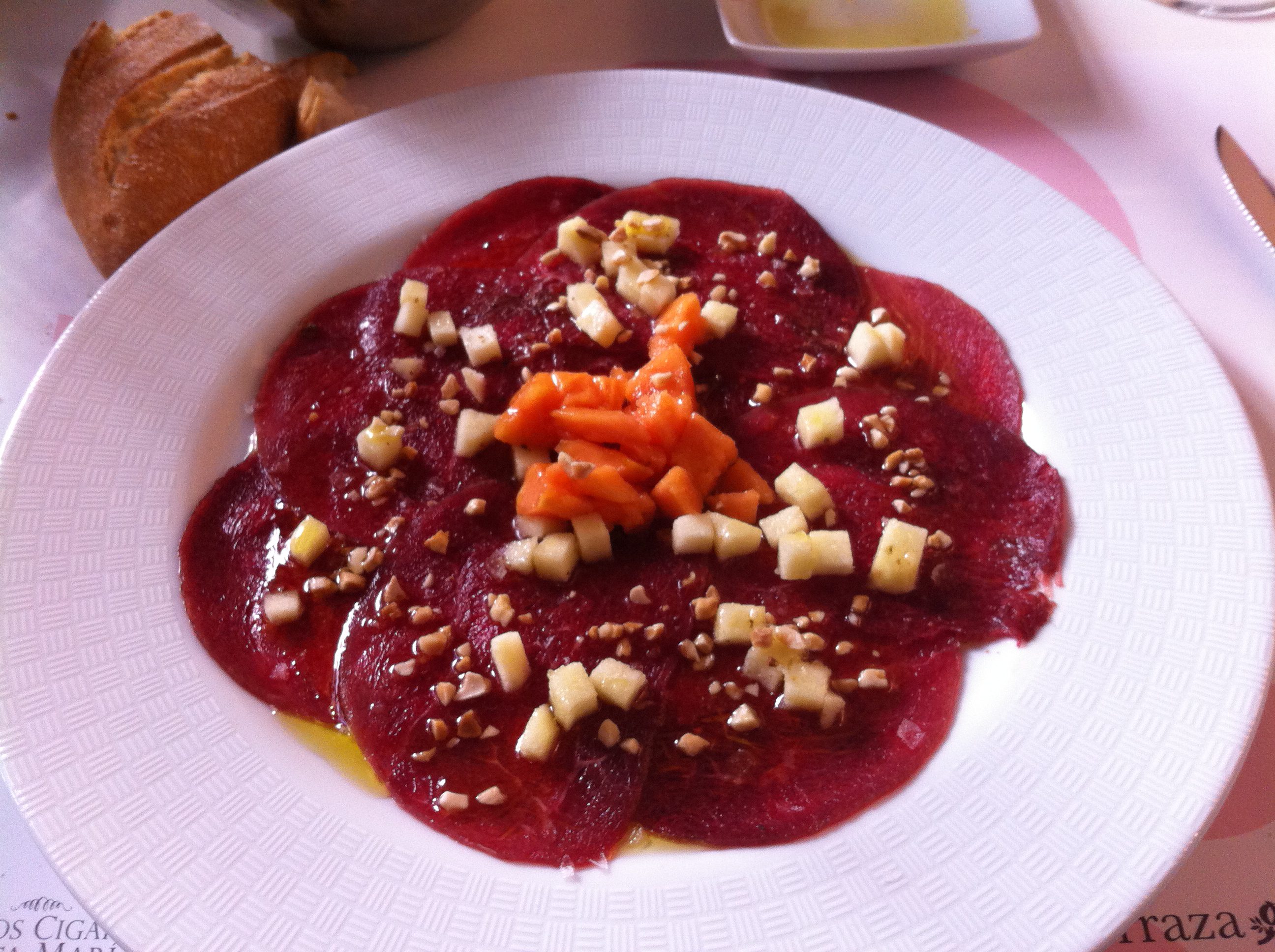 We worked up an appetite saying, “Ooh” and “Aah” so we walked into the first restaurant off the main square that we saw. I don’t remember what Lynn had, but this would be the best meal I had on my entire trip. I don’t even remember what my main course was, but the starter was venison carpaccio, and it was fantastic.
