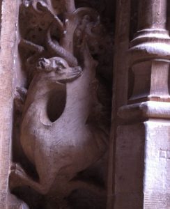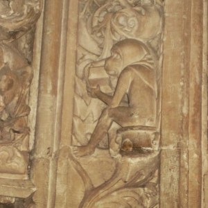 I found the monkey. It was sitting on a chamberpot and reading a bible upside down, supposedly a reference to the true impiety of priests carved by a workman.