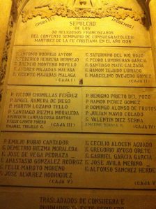 There was a memorial to 30 priests who were executed during the Spanish Civil War. An old French man had glommed onto us and was talking up a storm. I couldn’t concentrate on reading the plaques, so I apologize for not knowing more.