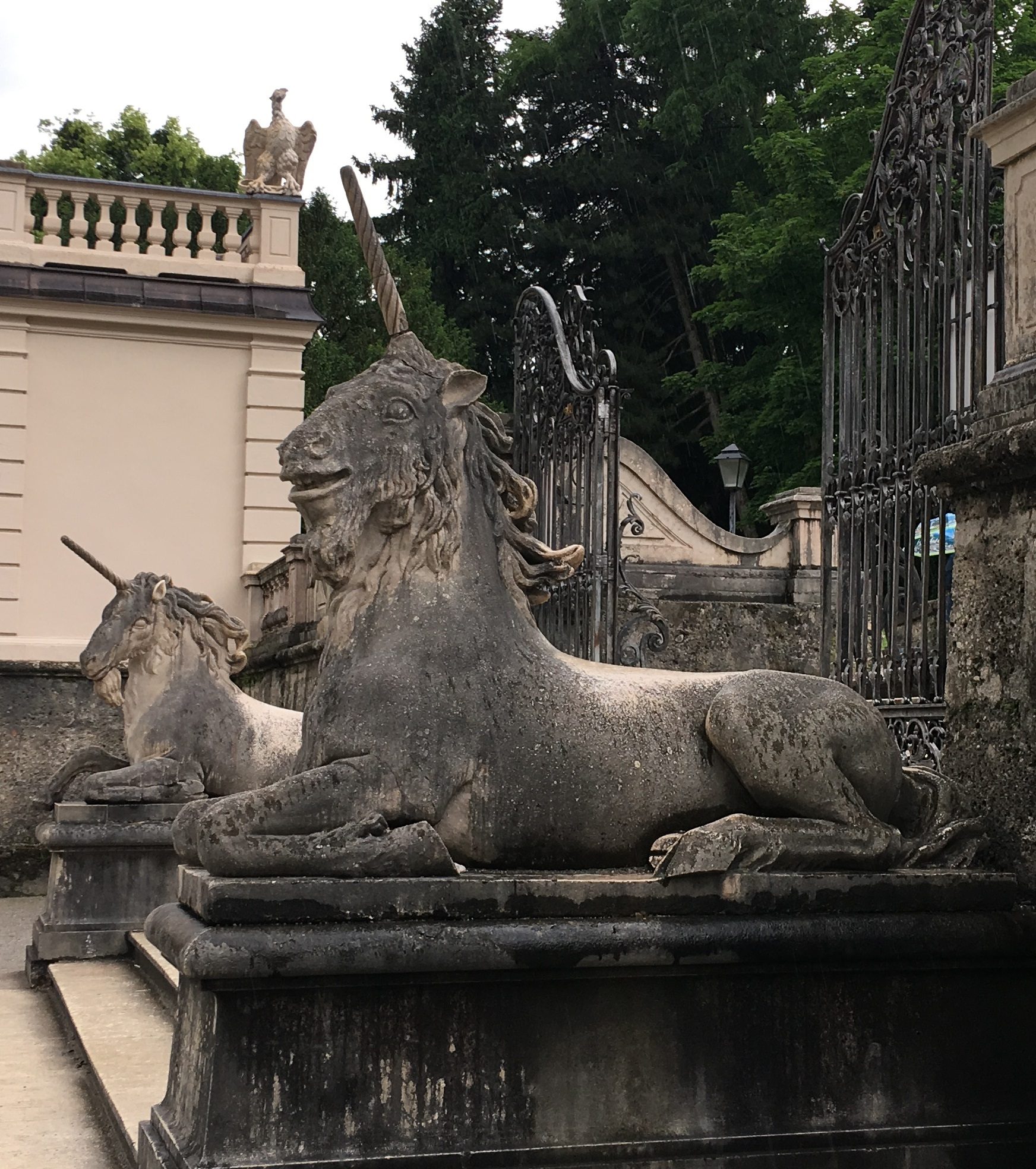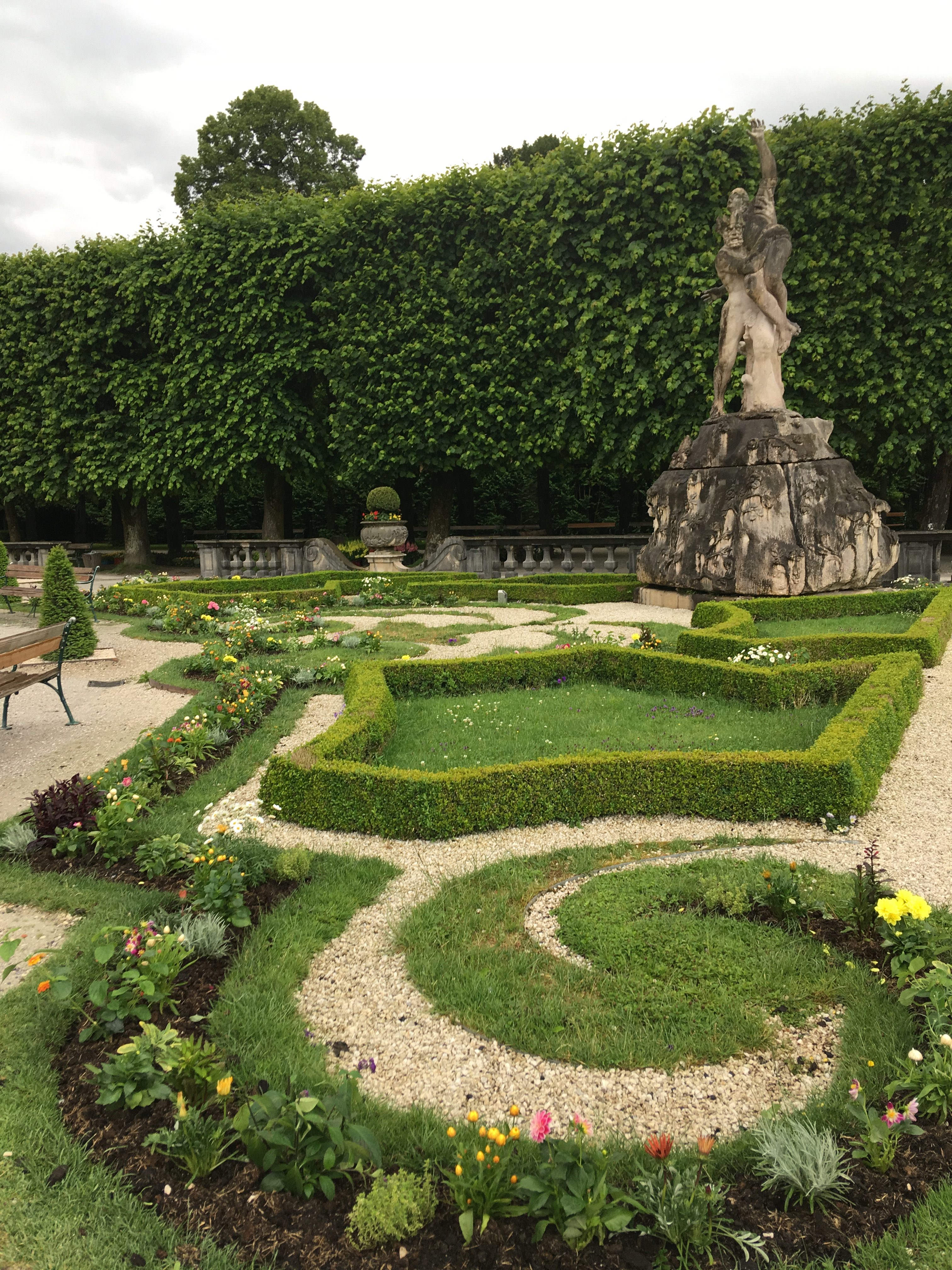 We walked around the big garden called the Mirabell. A statue depicting the rape of Persephone attracted my eye because I had seen another one like it in Rome last fall. Then I did a 180 degree turn and it appeared that all the statues depicted a rape scene. It wasn’t my imagination: “In the heart of the garden, you will see a large fountain, with four statue groups around it: rape of Helena, Aeneas and Anchises, and finally Hercules and Antaeus. These statues were made by Ottavio Mosto in 1690.” That was pretty unclear, but the point is, someone thought it was a great idea to design a garden full of statues about rape. Yuck.