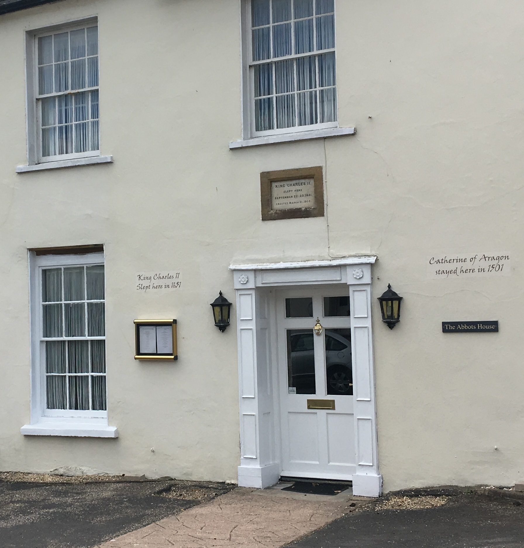 This is the town of Lyme Regis. The sign on the white building notes that Catherine of Aragon slept here in 1501, followed by King Charles II in 1651. Just imagine.