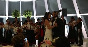 They did a beautiful job of covering all the bases. The music featured native drumming, a bagpiper, a Mexican-American singer and string orchestra, and a Motown trio. The bride wore a white dress and stilettos and the groom wore a tux—with moccasins and a leather headband with eagle feathers.