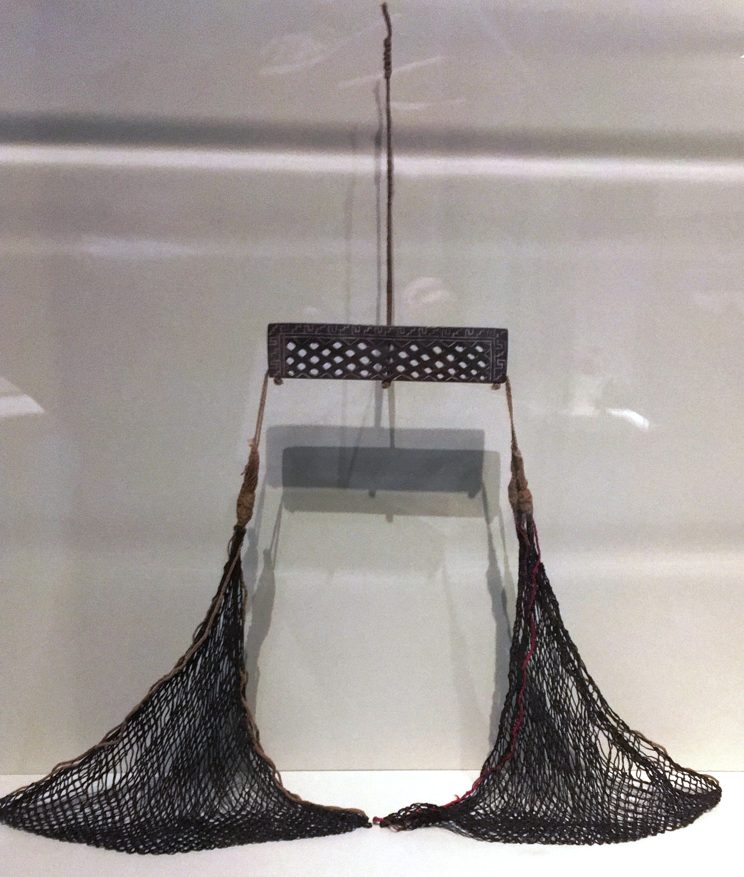I at first took the item below for an intricate neck piece but it is an example of a quipu, a counting and communications system which employed different colored strings with knots whose positions indicated values.