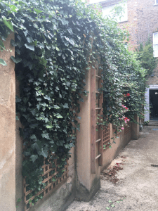 The house was three stories. Entering from the street, you came into a hallway that led to the back garden and stairs to the first and second floors (or second and third, if you’re American). There wasn’t really a back garden, just a passageway, but Sam’s wife had installed planters with geraniums to echo the window boxes which I watered every day.