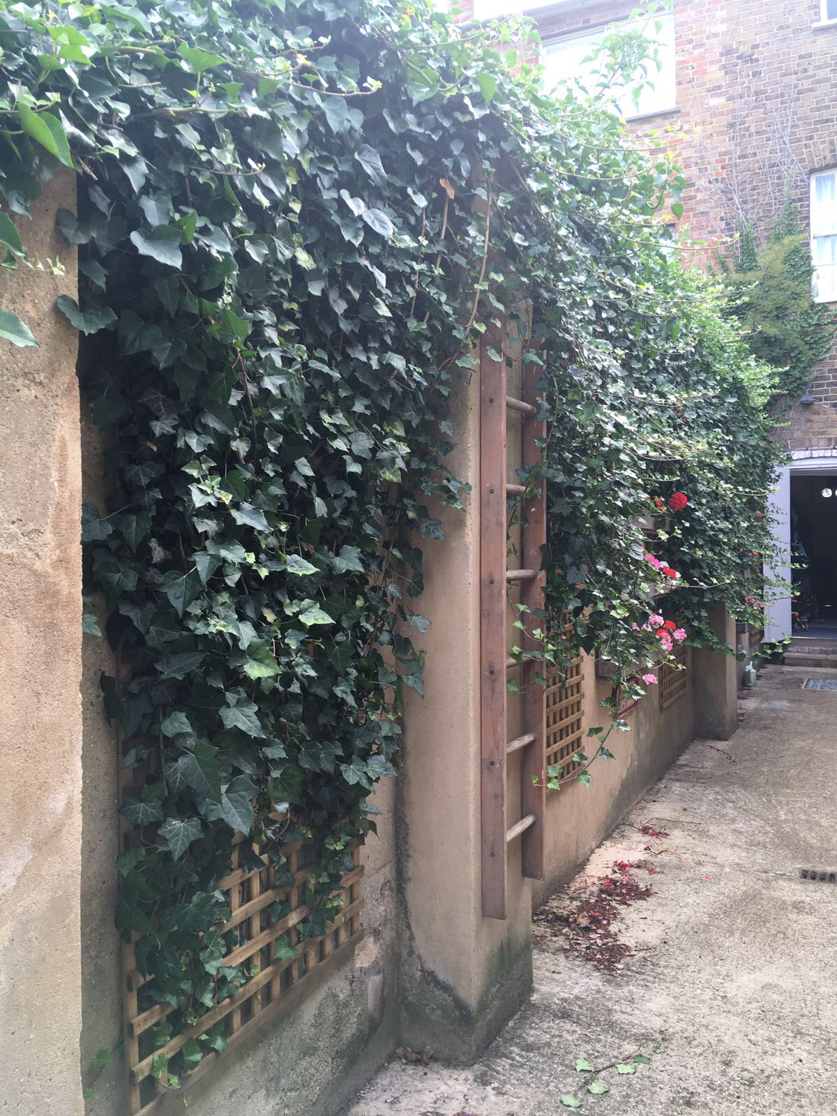 The house was three stories. Entering from the street, you came into a hallway that led to the back garden and stairs to the first and second floors (or second and third, if you’re American). There wasn’t really a back garden, just a passageway, but Sam’s wife had installed planters with geraniums to echo the window boxes which I watered every day.