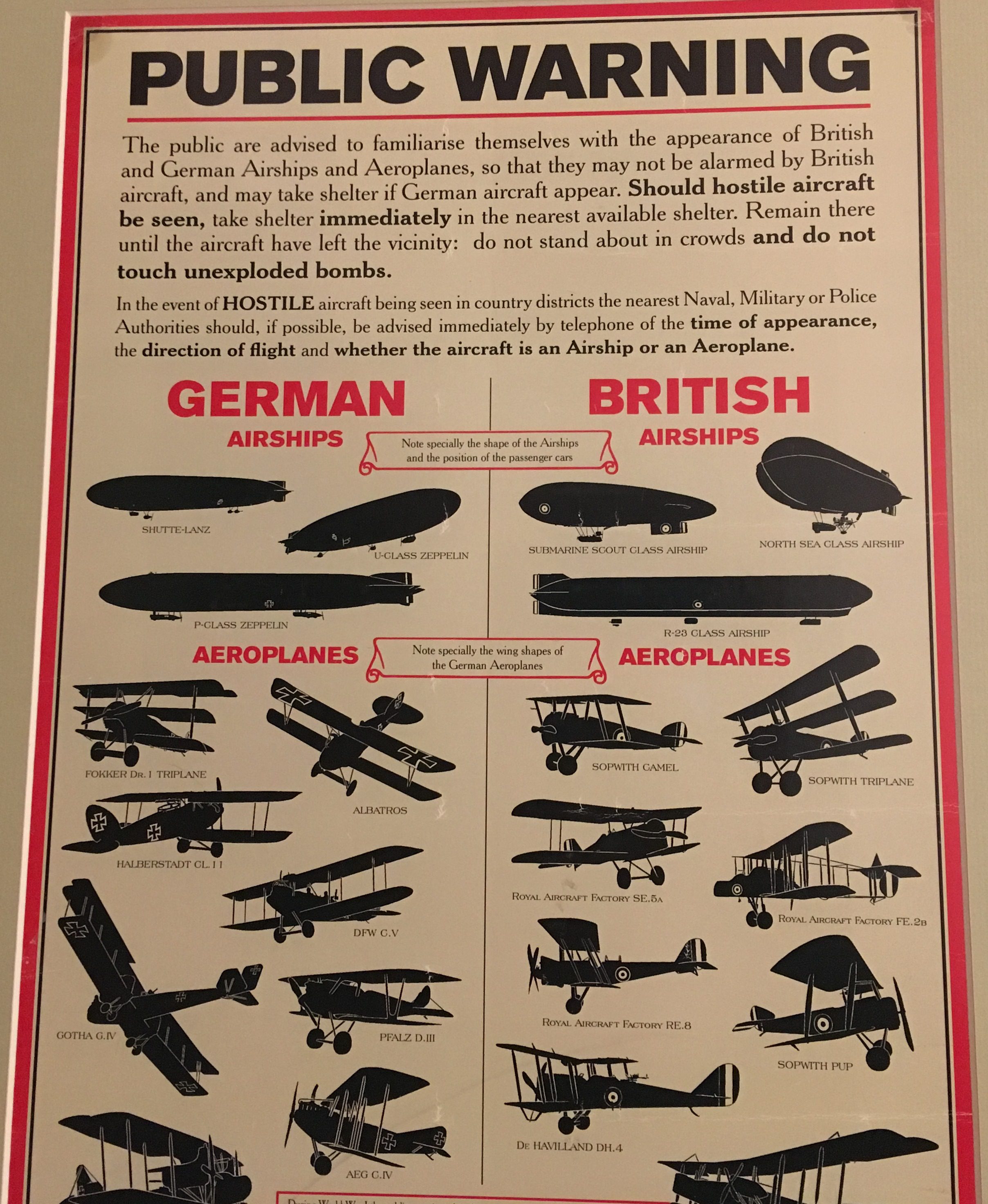 I’m fascinated that people were expected to discern German from British bombers. Can you imagine teaching your kid, “Now Jimmy, study this carefully.  The ones on the left are the bad planes.  When we see them we run for the bomb shelter so we don’t get blown to smithereens like the Evans family.”