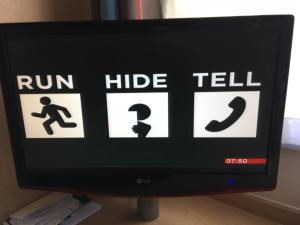 I flipped on the TV while I got ready. There was a long news segment about how to survive a terrorist attack whilst on holiday. When they got to the end and quizzed the viewers, I yelled my answers from the bathroom.