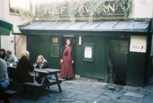 I slipped down a narrow passage to the Turf Tavern, got a pint of Old Rosie Scrumpy, a cider beer, and slid into a booth by a window.