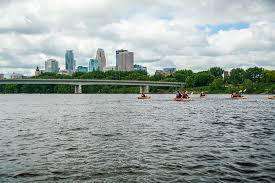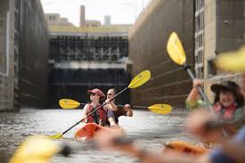 “I had never kayaked before.  I borrowed a friend of a friend’s kayak, which turned out to be heavy as a bathtub.  We were supposed to paddle 44 miles along the Mississippi, through the locks in downtown Minneapolis, camping overnight at an old fort—Fort Snelling—and finishing in St. Paul.  We were kayaking on the river with barges and paddleboats and houseboats!  How hard could it be?”