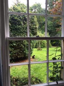 In the background lurked the two cats, Dash and Dot, seen here outside my window.
