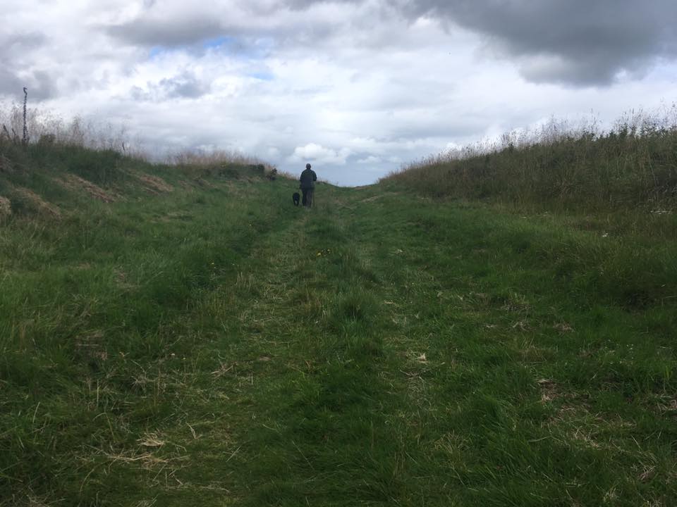 We trotted down the hill. I stumbled twice and Richard gave me his walking stick. I prayed he wouldn’t stumble because I wouldn’t be able to drive to A&E.