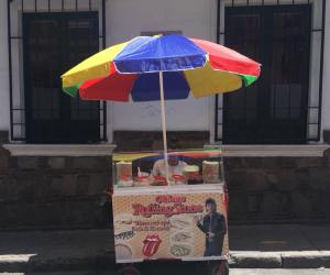 We stopped at the stall of a fruit vendor Michael knew. “You can sample seven fruits for 6,000 pesos,” he informed us questioningly. Did he think we were going to say no? Six thousand pesos is $2.00.