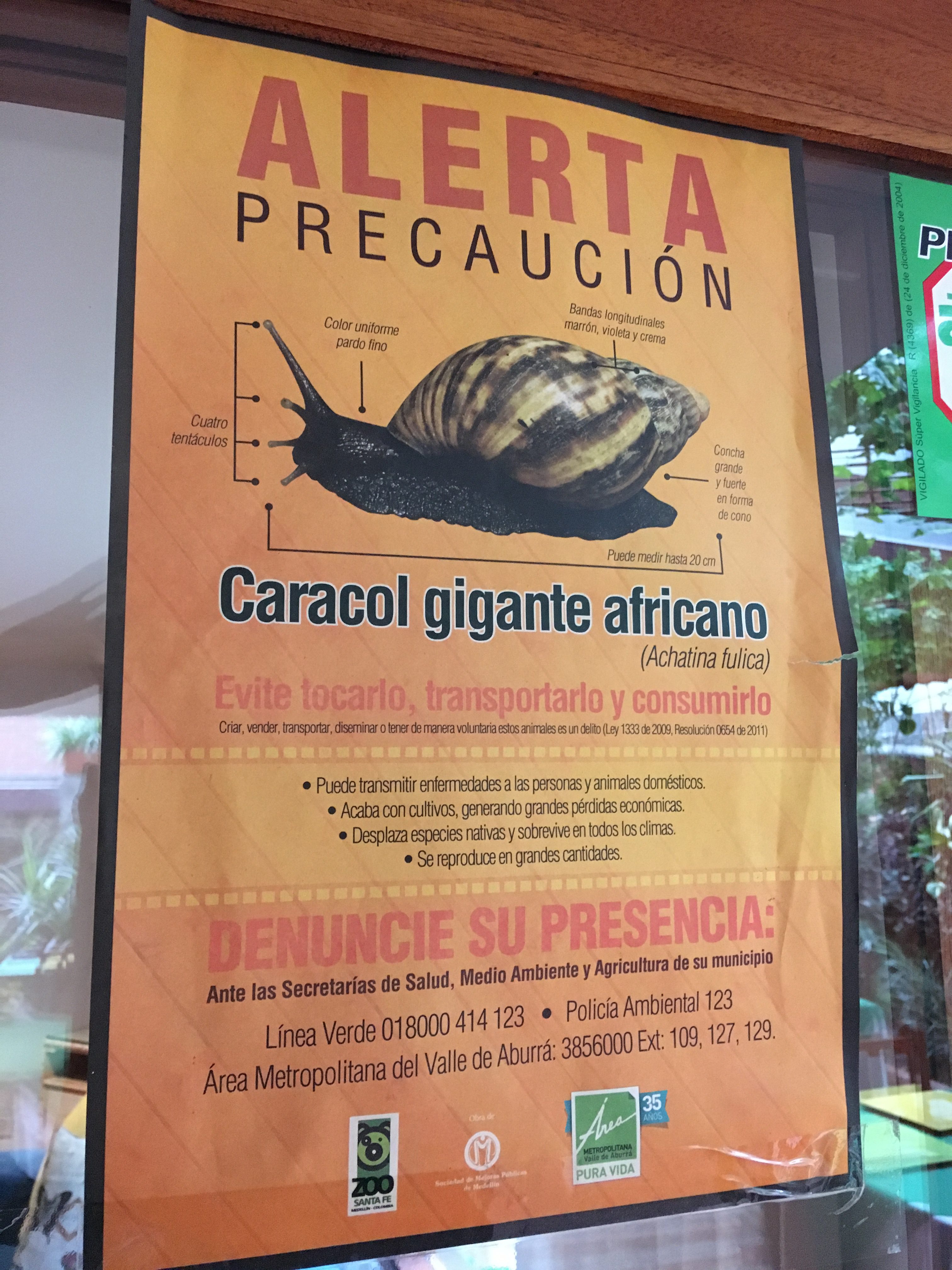 “Avoid touching, transporting, and eating.” I could do that. Thankfully, I never saw any giant African snails.