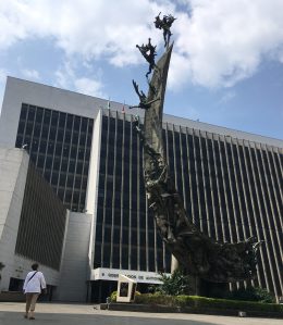 This soaring piece is by a sculptor named Betancourt. It contains all the elements of Colombia’s development, from natural resources, to horses and the rail road, to the indigenous workers and Spanish conquistadors. The four of us are very well traveled, and we were in awe. The photo doesn’t do justice to the humbling feeling of standing beneath it.