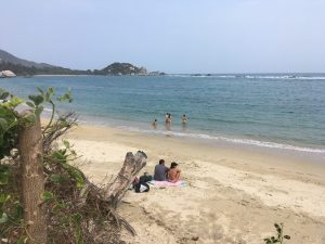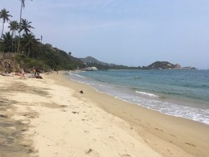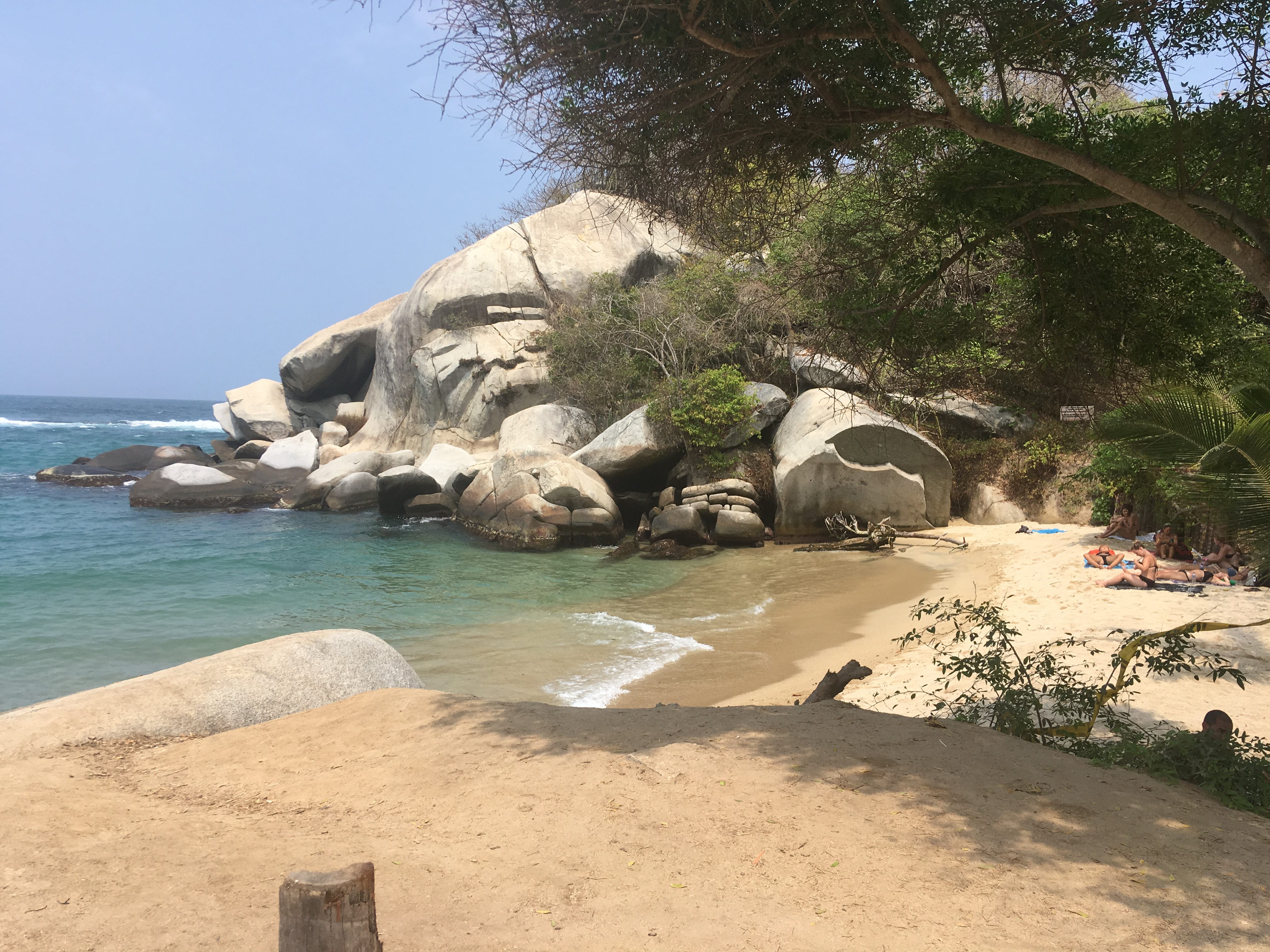 We walked on, passed a hut selling cold beer and snacks, and in five minutes were at the beach. I had heard that Tayrona’s beaches are the most beautiful on earth. I haven’t been to enough beaches to judge that, but from our first glimpse Canaveral was wildly beautiful.