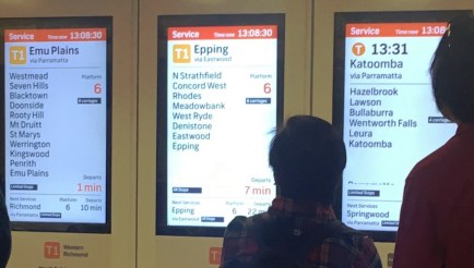 We walked to the train station, uphill about five blocks. We caught the train to Central Station, where I noticed the entertaining mix of names that were English (Epping, Richmond), Aboriginal (Katoomba, Bullaburra), and just funny sounding (Emu Plains, Rooty Hill).