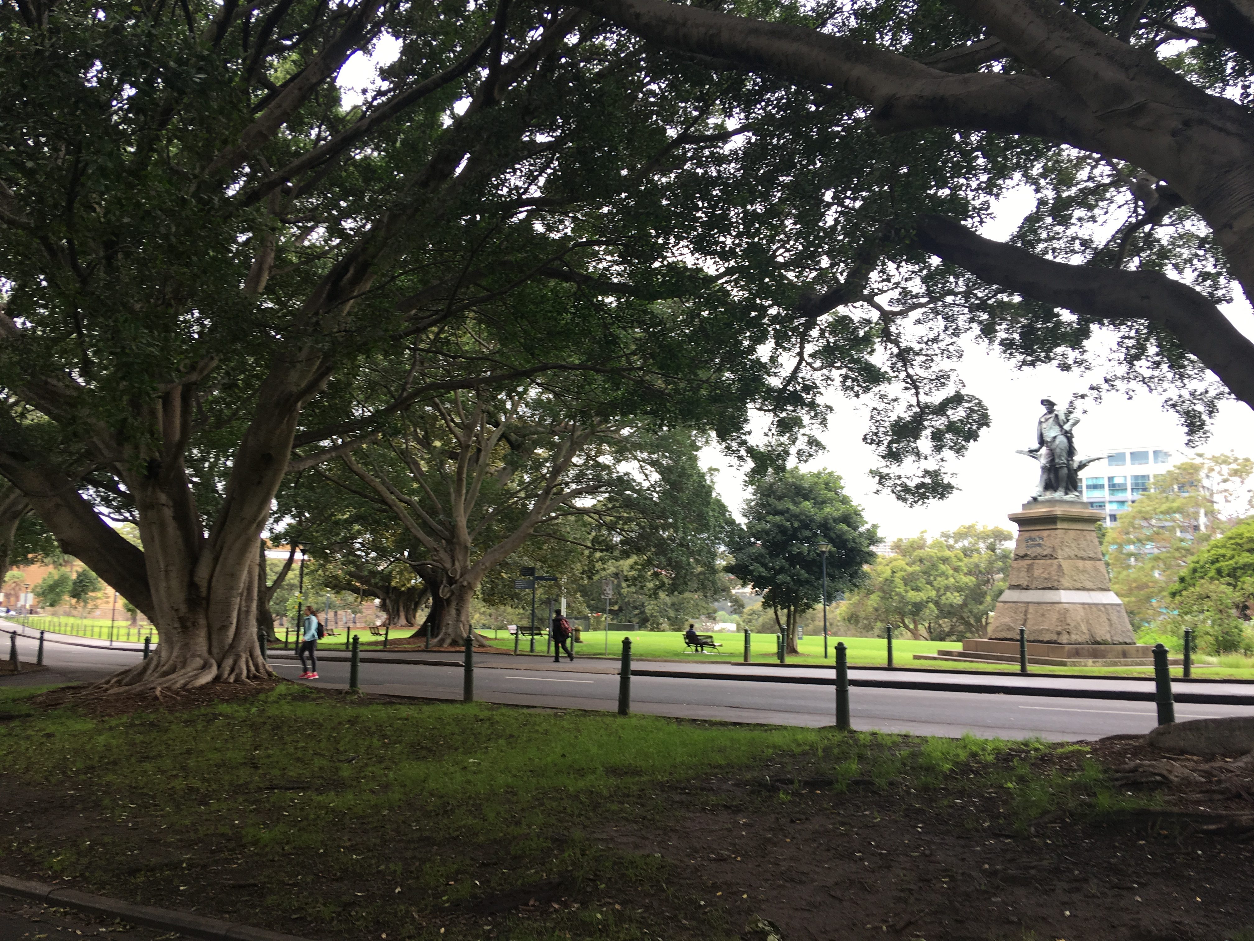 Making my way along a great boulevard and series of parks, I spied a statue of the Scottish poet Burns dwarfed by yet another giant Australian tree.