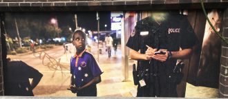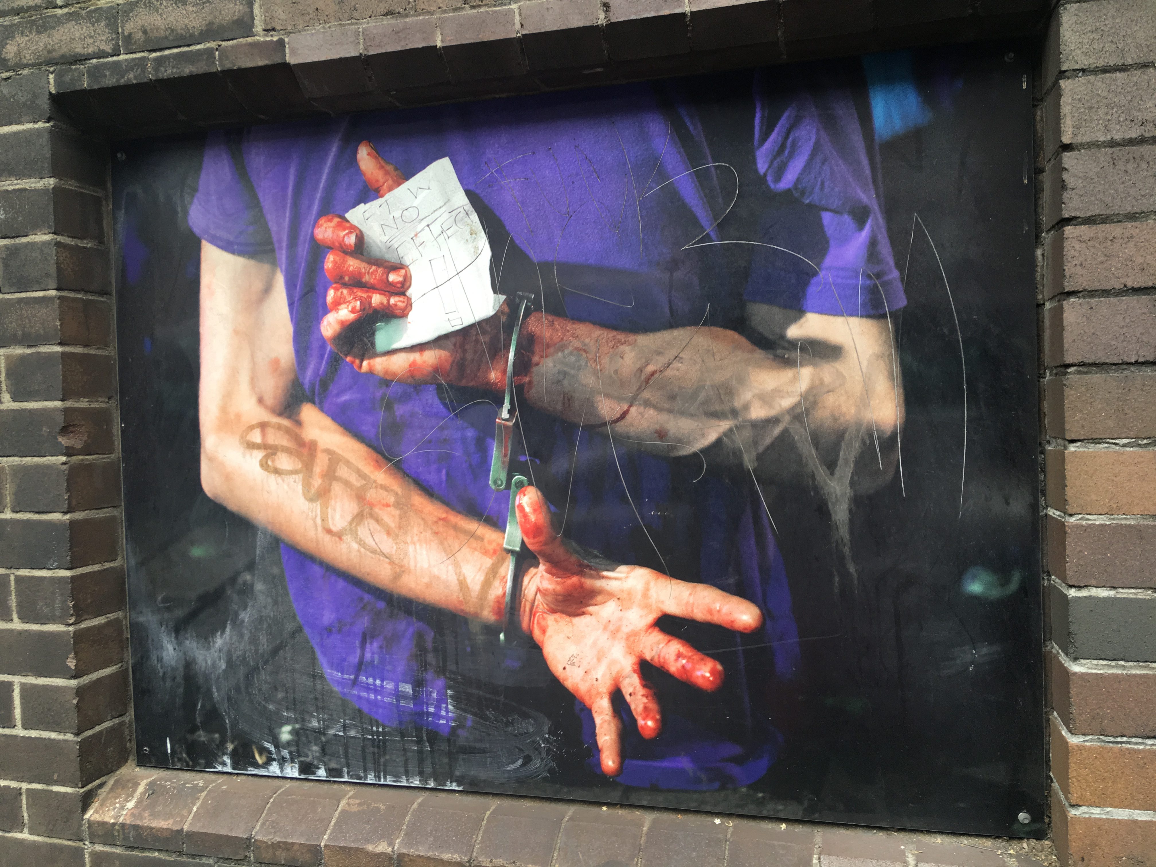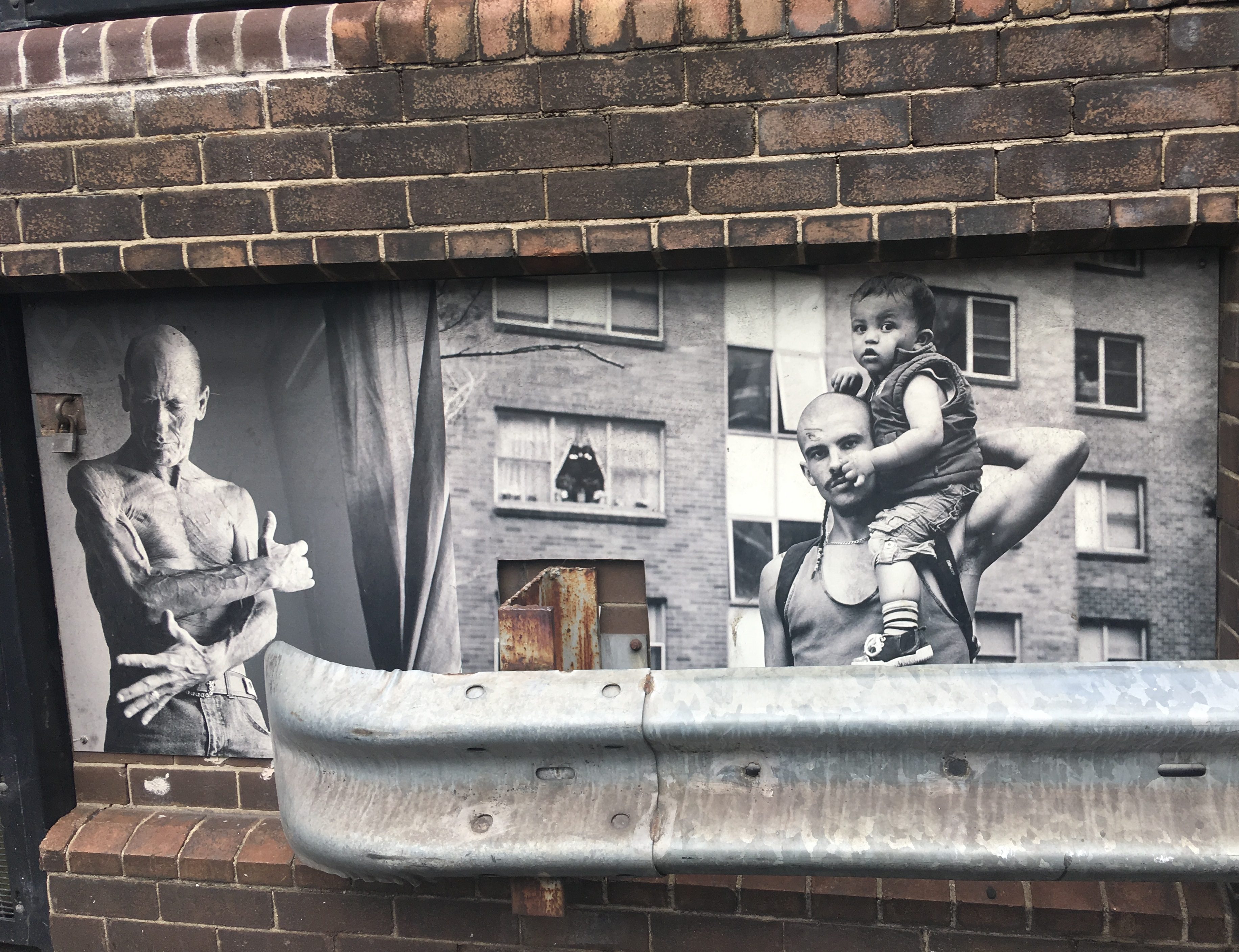 I passed a gritty photo exhibition that was mounted on the brick walls supporting the train tracks. There was an Aboriginal theme.