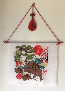 There was a gift shop; I bought a boar banner for 200 yen (less than $2) which I now have hanging in my entryway along with a plaque from a subsequent shrine.