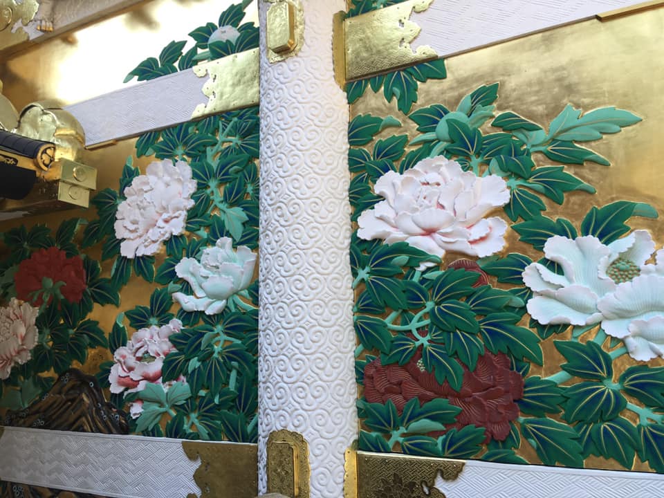 I stopped at the torii again to try to find giraffes or whatever animal had been interpreted as such, but could not.  I did learn that the peony is the King of Flowers.