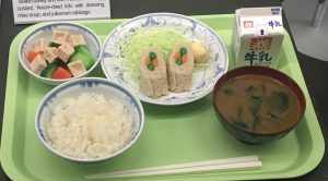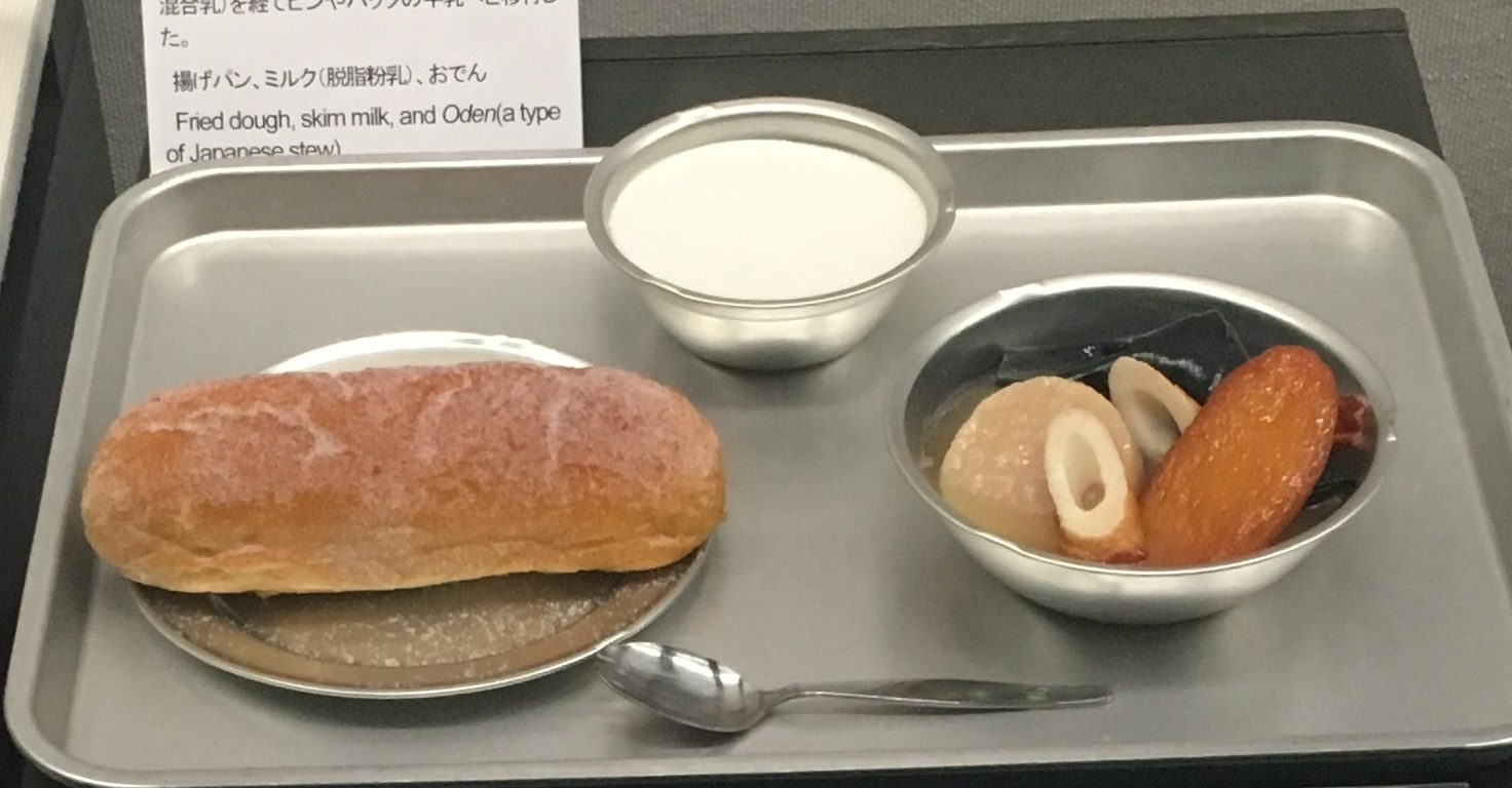 This was a typical school lunch in 1960, when Japan was still rebuilding.  Pretty grim.