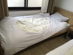 “Why is there a big hole in the duvet cover?” Lynn wondered. I would see this twice more on my trip, and I don’t know the answer.