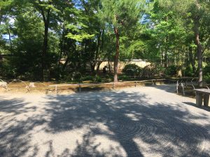 Getting things done fast was clearly not a priority. We didn’t see any other gardeners. How he did he keep it all up—was this such an old, established garden that it didn’t require much maintenance? That seemed unlikely. There were ponds and bridges, moss lawns and trees, and meticulously-raked sand.