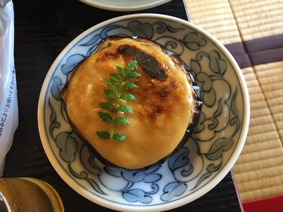 Based on the photo menu, I ordered the eggplant dish I’d enjoyed the day before. Untranscribable noises of appreciation issued involuntarily from me as I ate. “Mmm…I have to ask Taro what this topping is,” I managed to articulate. He had offered to answer any questions that came up after our class, whether about culture or cooking.