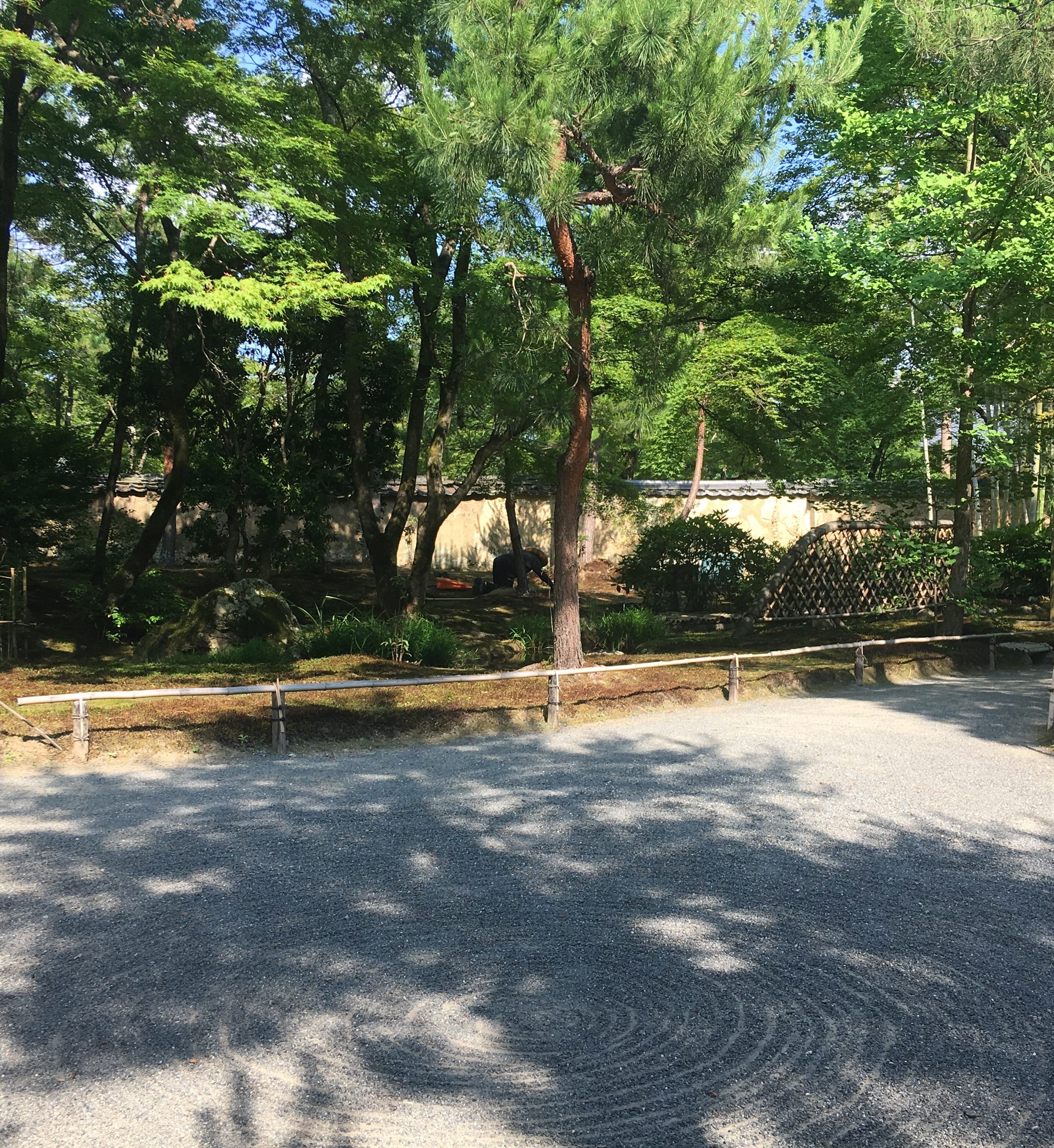 Getting things done fast was clearly not a priority. We didn’t see any other gardeners. How he did he keep it all up—was this such an old, established garden that it didn’t require much maintenance? That seemed unlikely. There were ponds and bridges, moss lawns and trees, and meticulously-raked sand.