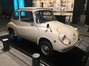 This is as good a place as any to insert a photo from the Edo Museum. This car—I didn’t record its name—was the Volkswagen Beetle of Japan—the one cranked out by the millions that everyone owned in the post-war decades.