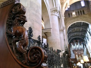 Another day I attended an organ concert there and we sat in the pews, which are richly decorated with carved “grotesques,” like griffins.