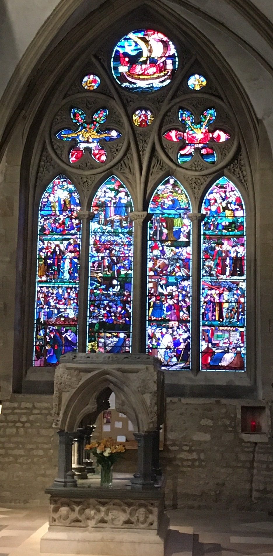 I’ve attended concerts at Christchurch Cathedral most often.  In one of the naves (I think that’s what it’s called, is the Lady Chapel.  It’s named for the patron saint of Oxford, Frideswide.  She was a nun born around the year 650 somewhere along the banks of the  Thames.  Her miracle—every saint needs to perform miracles—was restoring sight to the blind.