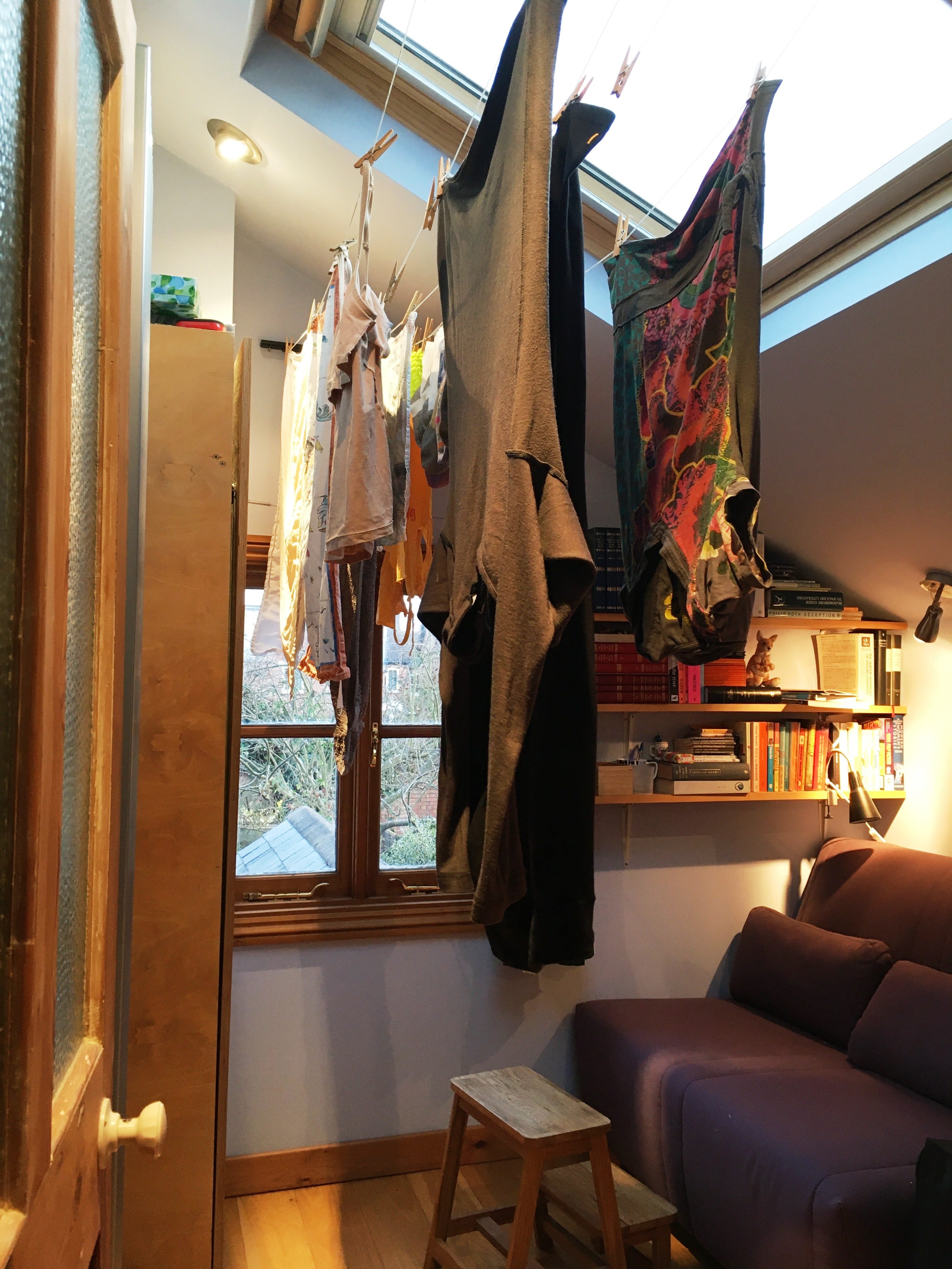 Back at the house, I do my laundry, hanging it to dry in the spare room.  I have stayed in a dozen British homes and even the few people who own tumble dryers, as they call them, have an aversion to using them.