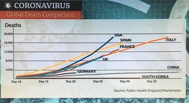 Every evening they show a series of graphs. I don’t know if this is being done in the US.  I can’t bring myself to watch he-who-shall-not-be-named.  Reading about his gaffs and lies the next day is bad enough.