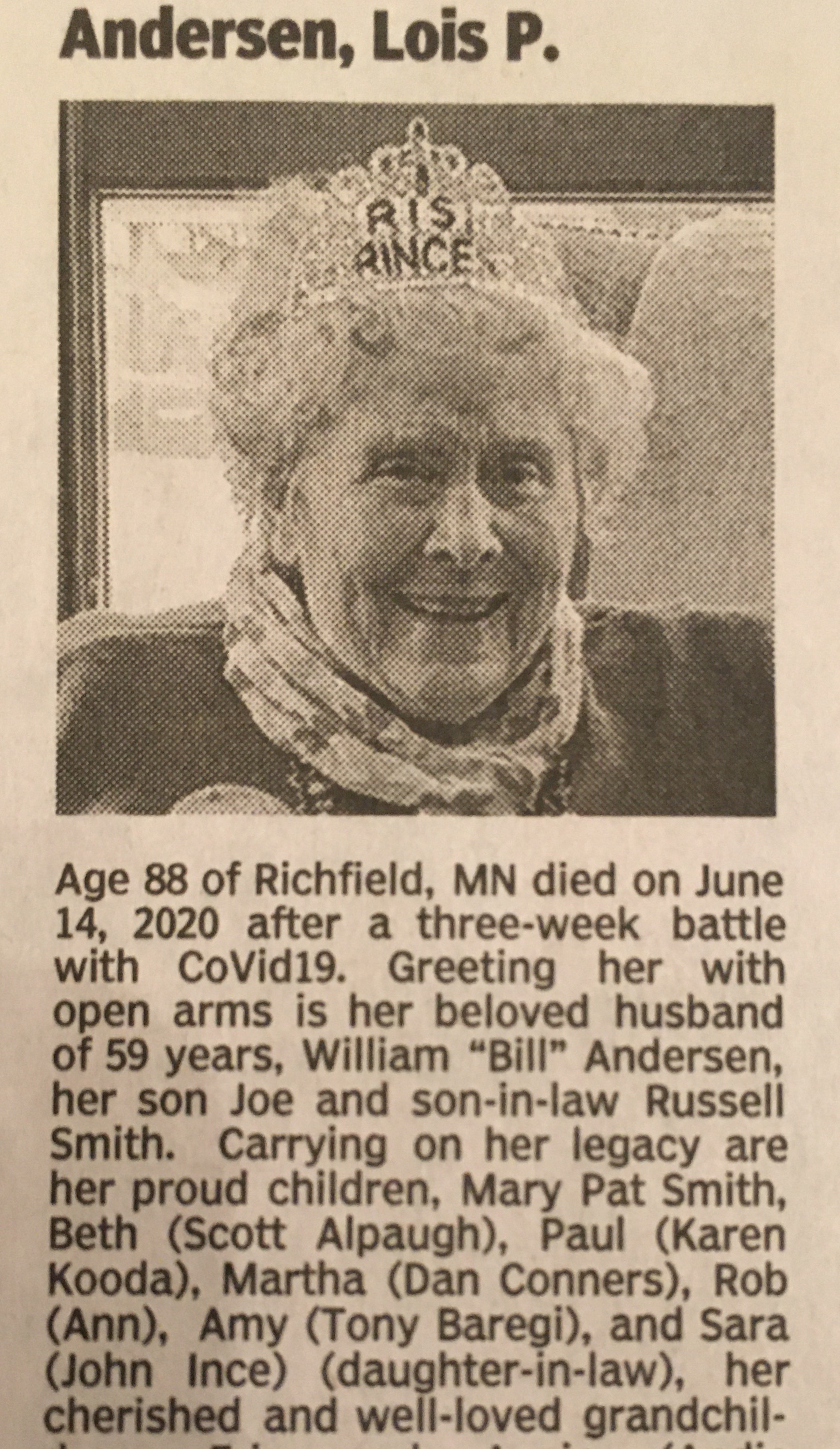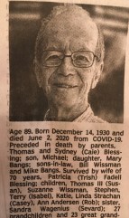 I have always perused the obituaries on Sundays. The “Irishman’s sports page,” they are sometimes called. These are a few I caught that were Covid-19 related deaths.