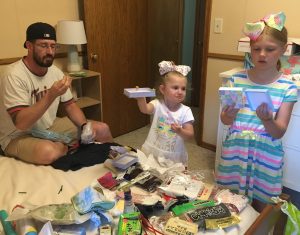 Of course I went, and here they are examining the Japanese food items I brought home a month later.
