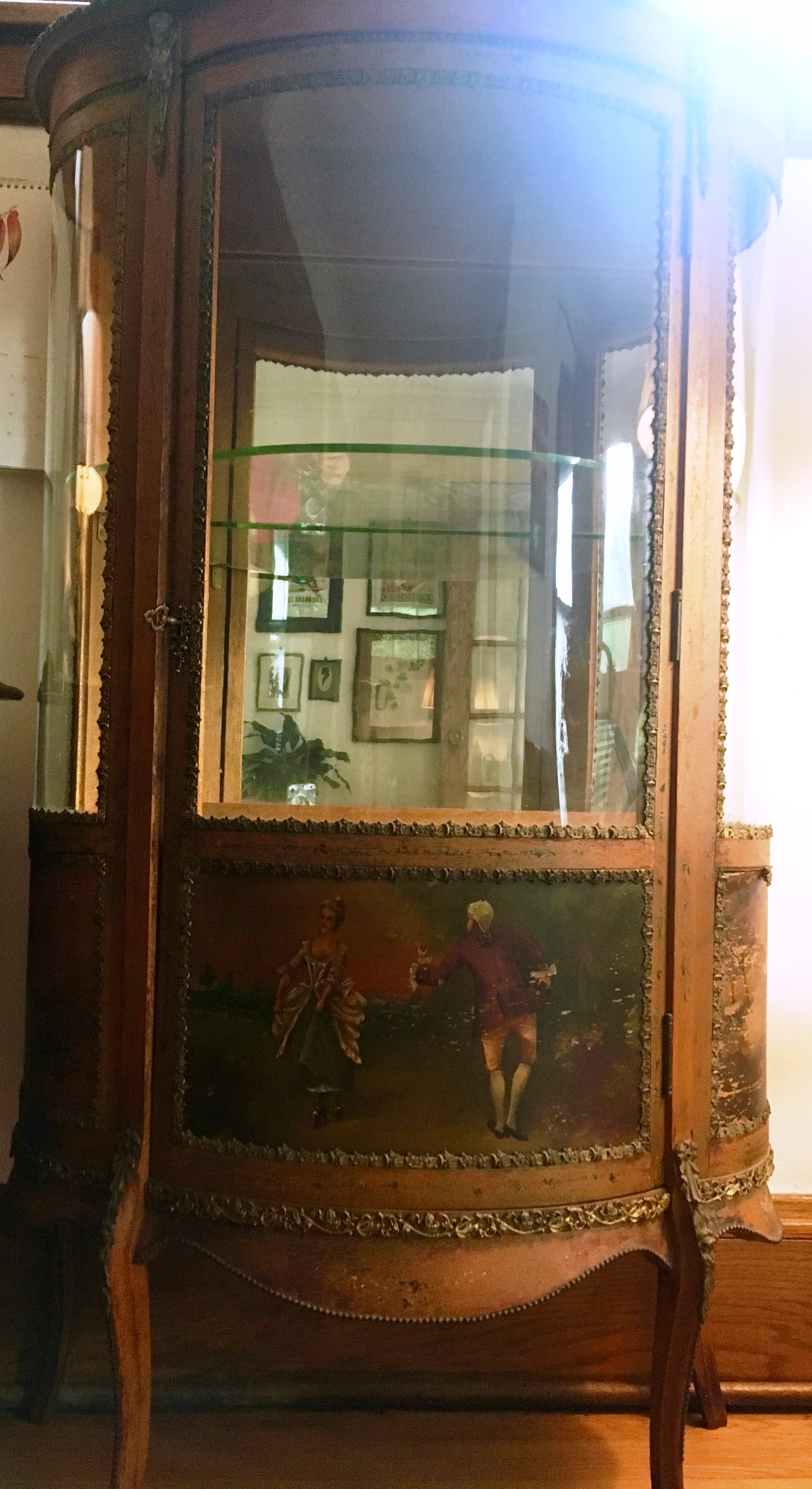 It’s a symbol to me, this curio cabinet. A symbol of my ties to ancestry and place, but also of being stuck in Minnesota and never being able to escape its gravitational pull. So I’ll try to sell it. Some nice gay couple may want it for their Lalique collection.