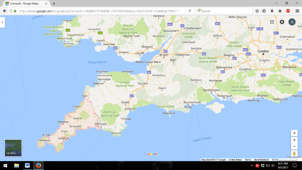 At the end of a week, we pulled out of the killer driveway for the last time and headed to Charmouth, which is near Lyme Regis, another town you’ve probably never heard of. Both are in Dorset, the next county east of Cornwall. Specifically, they are in west Dorset. This became apparent when we moved on to Devon a few days later, because the local maps we’d acquired only included the western half of the county. So we drove to the edge of the map and then had to switch to our atlas.