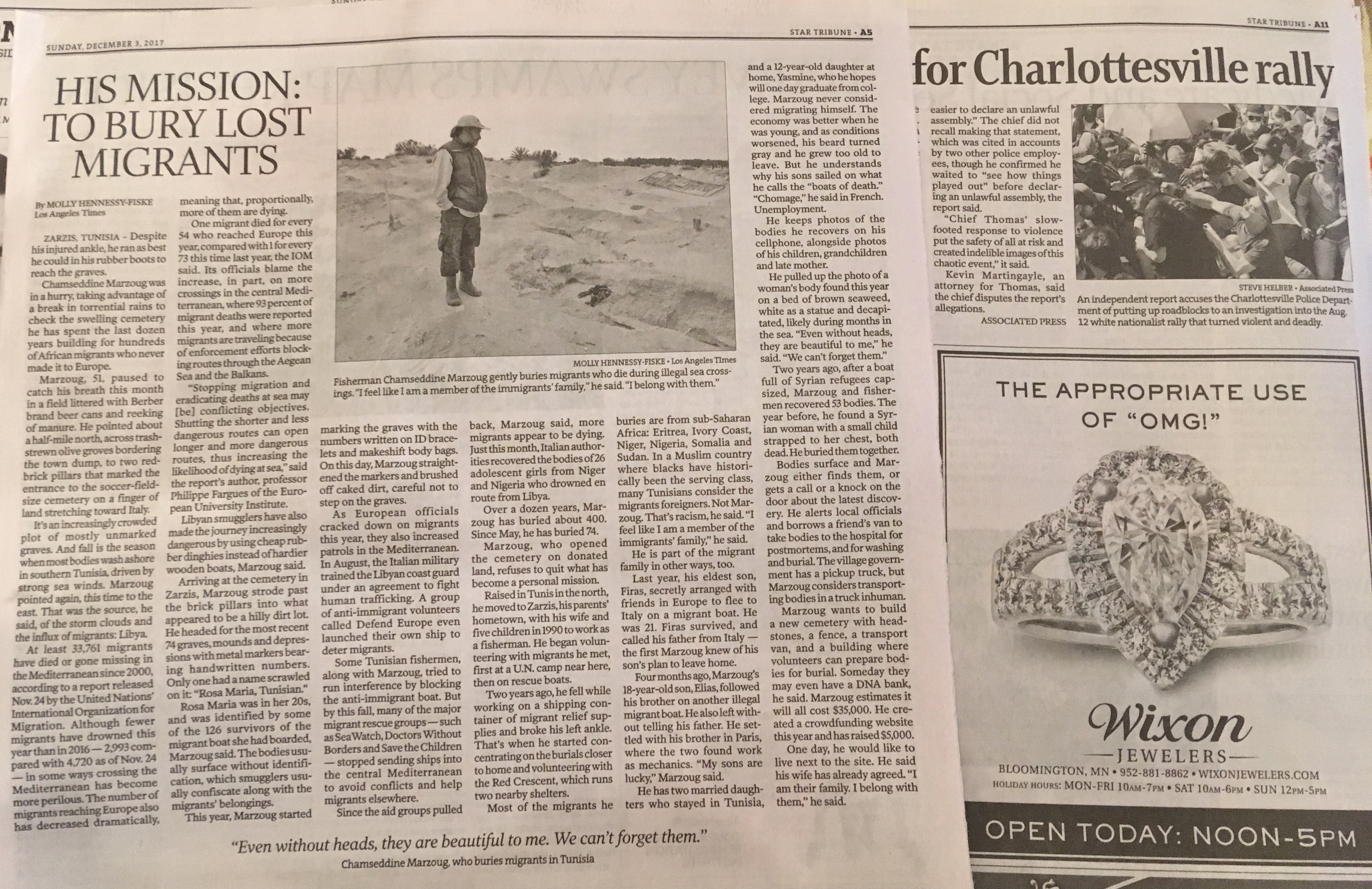 One: A fellow employee and I were eating lunch in the break room at the YMCA. I said his name—Vicente—and told him my son’s name was Vincent. He stared at me incredulously and replied, “I’ve been in this country 18 years and no one has ever pronounced my name right.” Vicente told me he lived 45 minutes away from work. He left his apartment at 5:15am to get to his job as a custodian. He was worried whether his car would start when he went outside after his shift because it was so cold and he thought he needed a new battery but he couldn’t afford it right now.